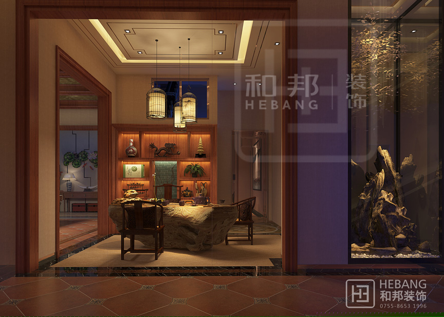 將現代的一些元素和傳統的中式風格有機的結合起來,用現代的一些審美方法來營造出傳統的韻味和感受。中式風格特點里面還是大量的使用對稱布局,用以營造清幽雅致的生活情調。