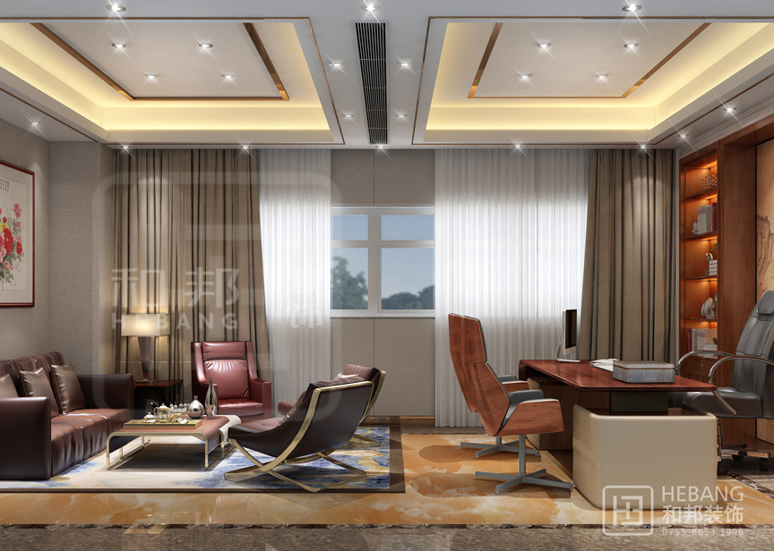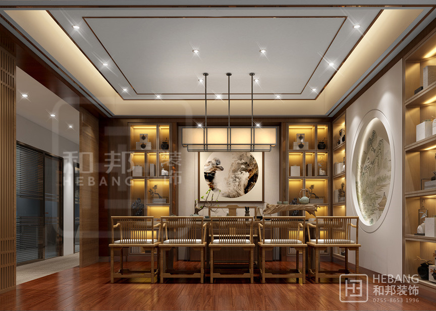 運用現代感曲線、明快色彩、精致陳設和混搭風中式家具組合,打造出一個具有深厚文化底蘊同時又兼具現代、時尚的辦公空間。