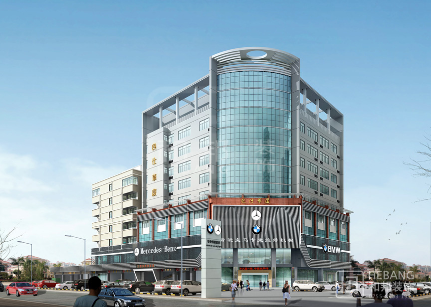 高端大氣的現代設計:以汽車頭部為原型設計的門頭,大膽新穎,創新十足。分區設計,奔馳與寶馬維修店分布兩旁,使整個維修機構美觀大方。